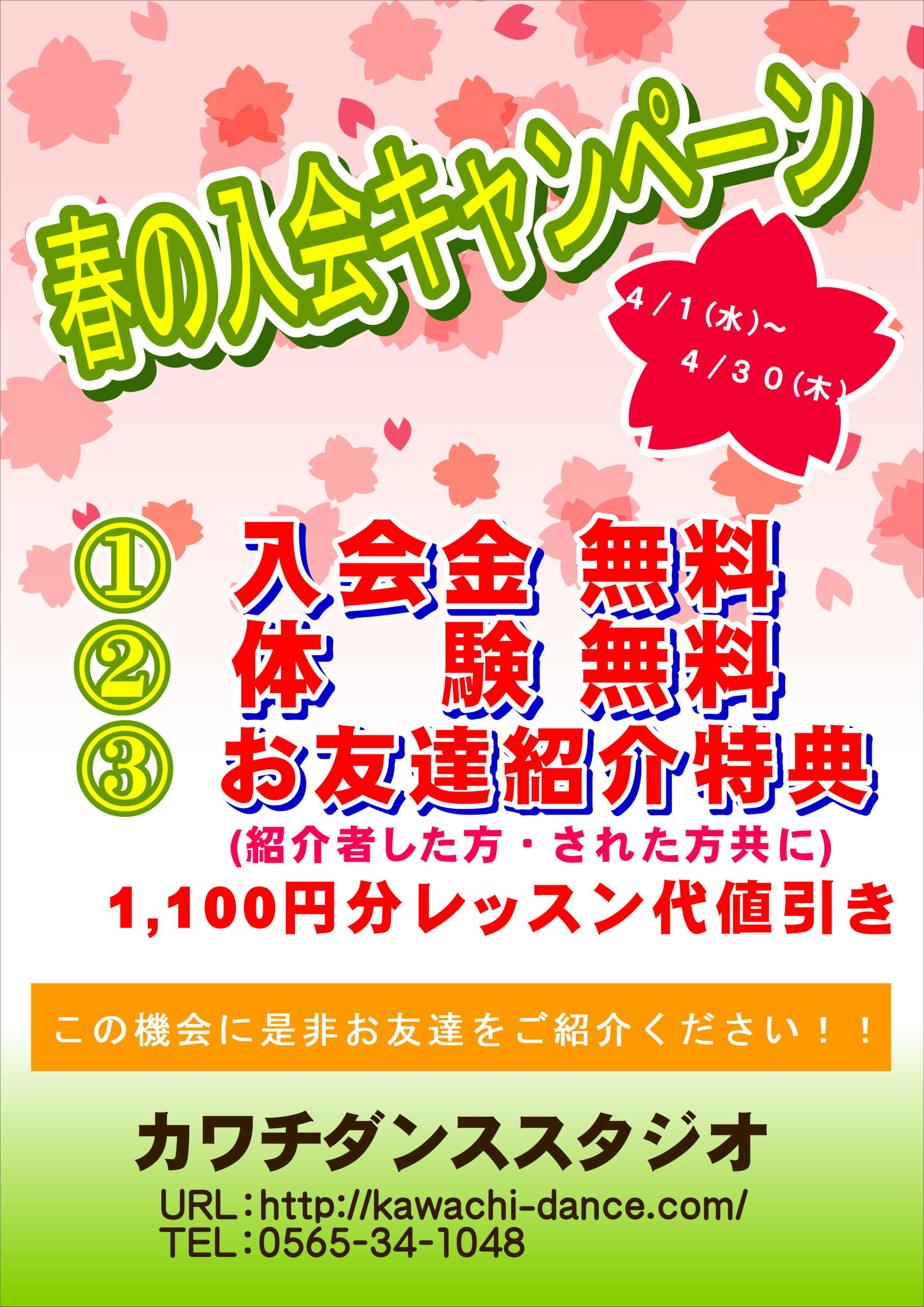 4月1~30日まで、春の入会キャンペーンを実施いたします!!