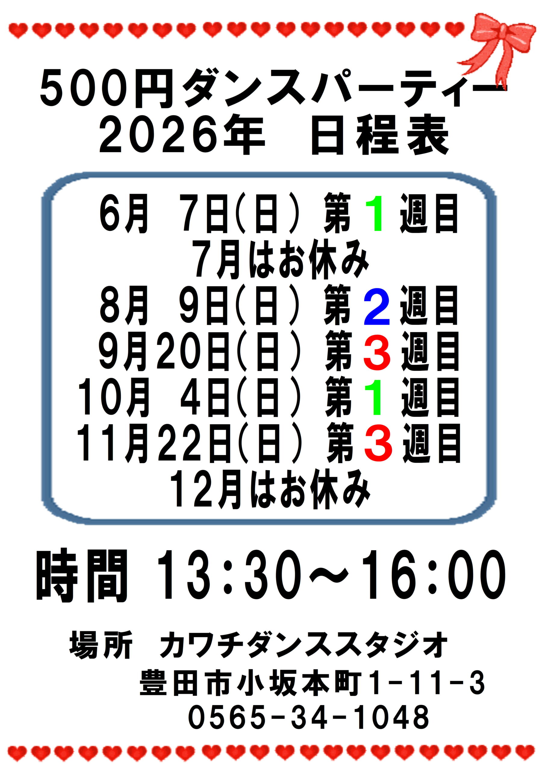 500円パーティー予定表更新しました